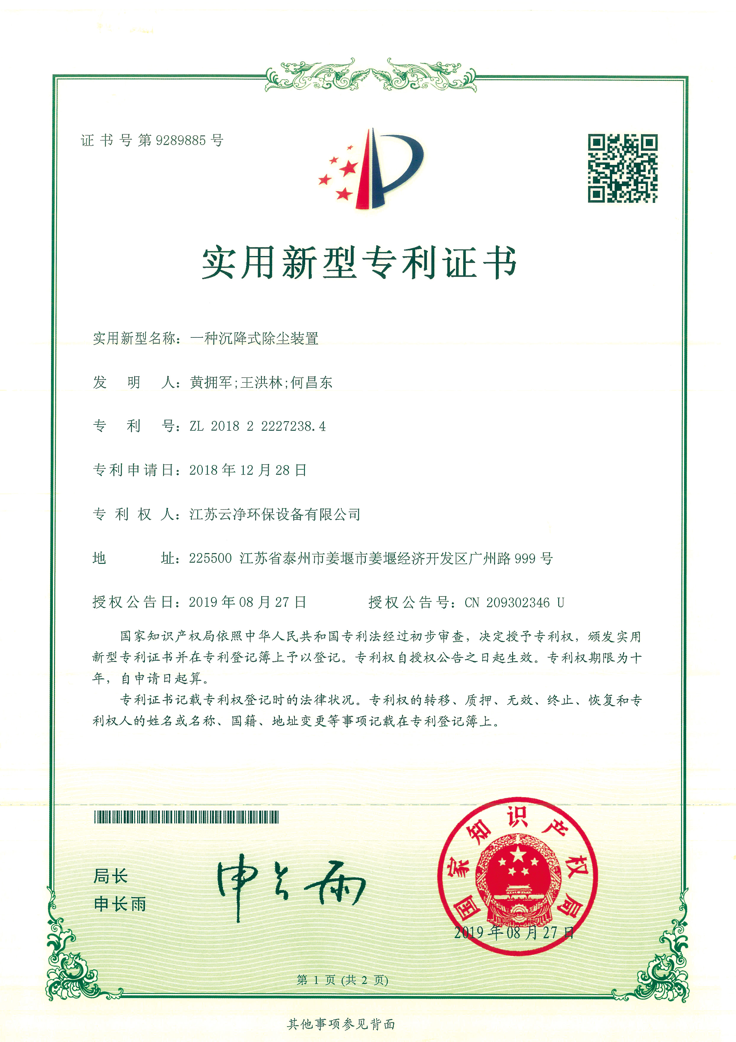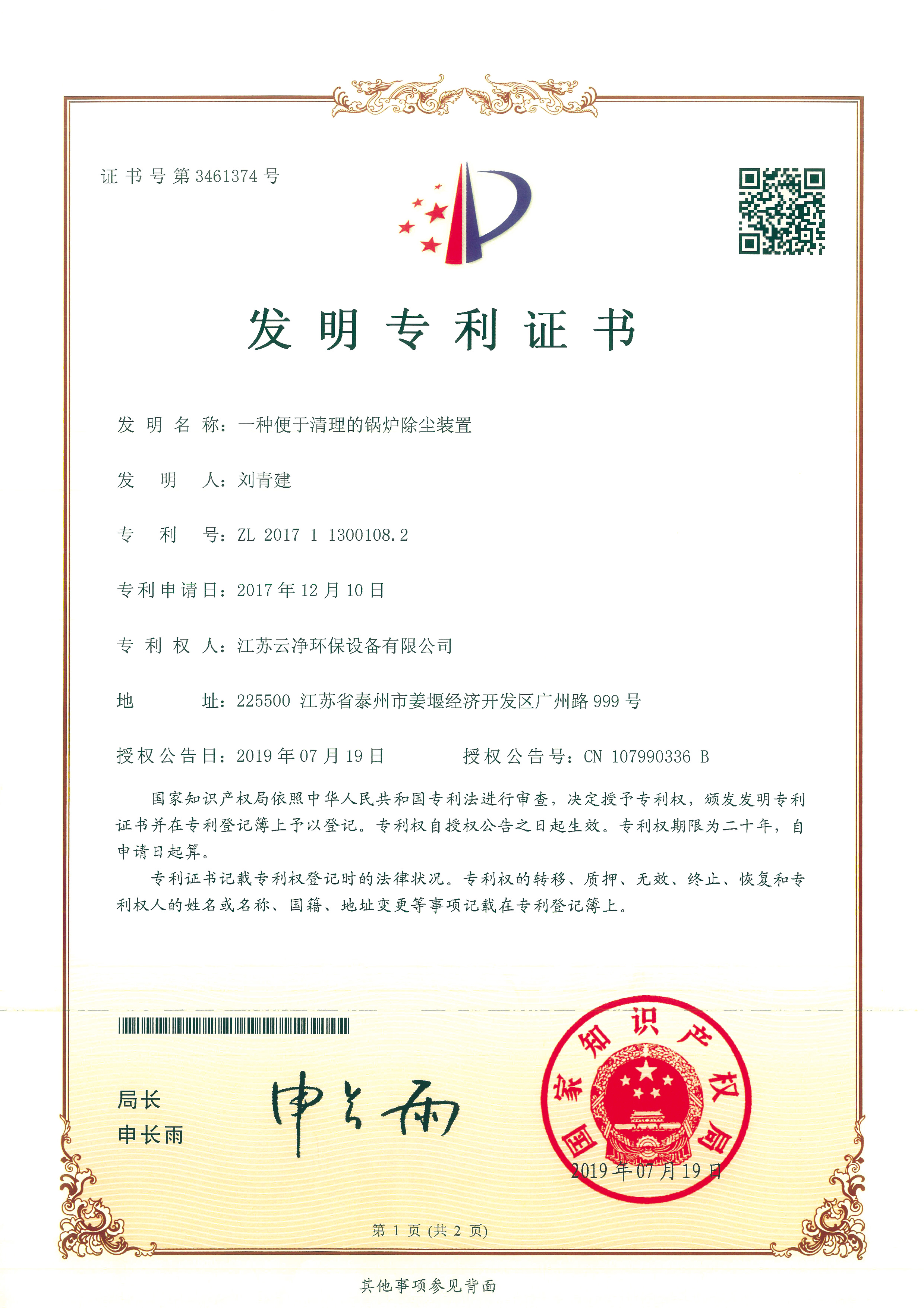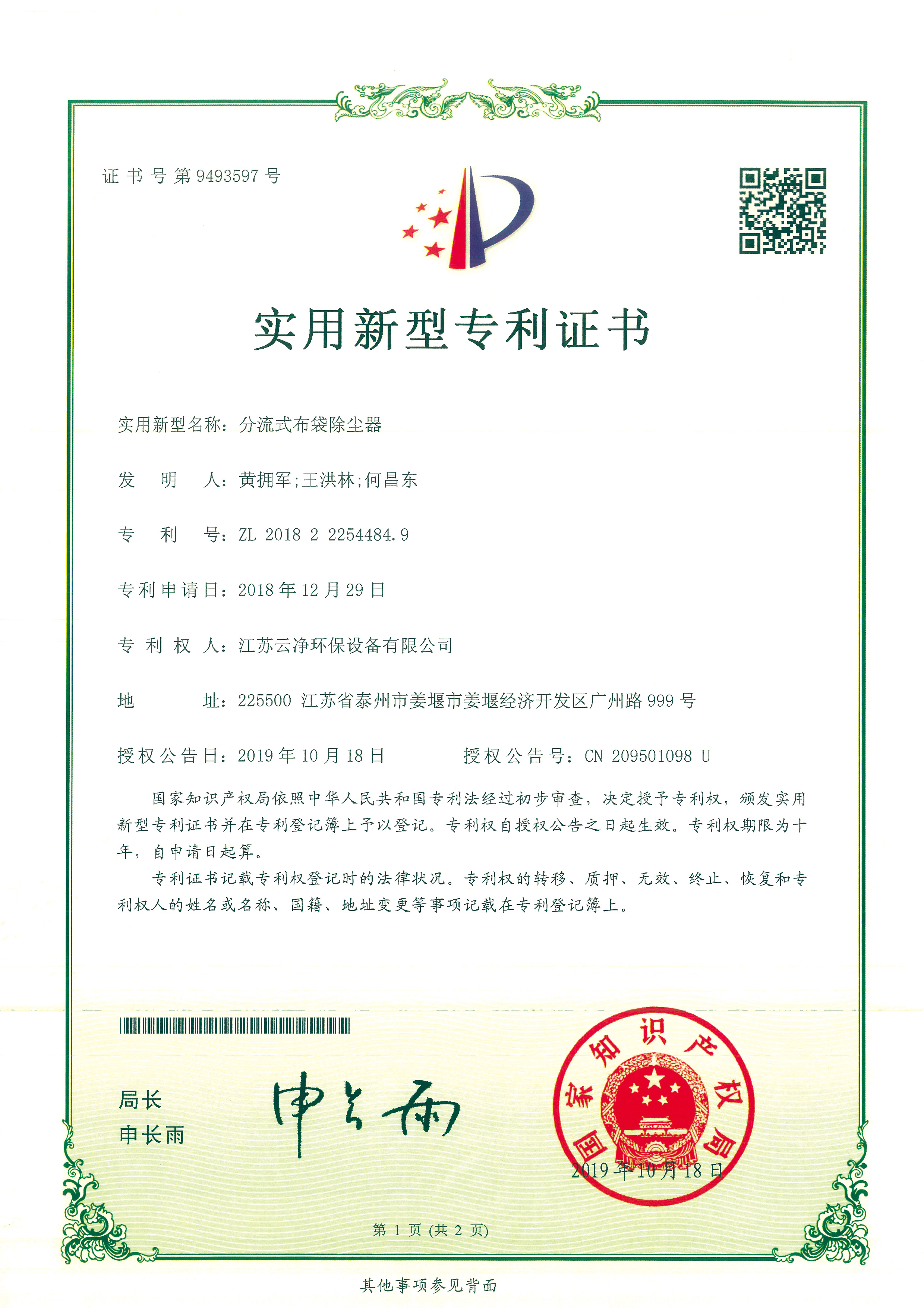 公司先后獲得“江蘇省民營科技企業(yè)”﹑“環(huán)保產(chǎn)業(yè)骨干企業(yè)” 、“重合同守信用AA級企業(yè)” 、通過ISO9001:2015質(zhì)量體系認證、ISO14001:2015環(huán)境管理體系、知識產(chǎn)權(quán)管理體系和ISO45001:2018職業(yè)健康安全管理體系認證,為江蘇省高新技術(shù)企業(yè)。多項產(chǎn)品獲得高新技術(shù)產(chǎn)品認定,擁有發(fā)明及實用新型專利31件(ZL202020254279.7、ZL202020254287.1、ZL202020288783.9等),現(xiàn)有各類除塵設(shè)備﹑脫硫設(shè)備﹑超凈排放設(shè)備八大類近200個規(guī)格產(chǎn)品,特別是開發(fā)出國內(nèi)的有色冶煉系統(tǒng)收砷布袋除塵器,該設(shè)備開創(chuàng)了收砷布袋除塵器先例,本體使用壽命可達十年之久,是國內(nèi)其他設(shè)備無法比擬的。公司具備良好的產(chǎn)品研發(fā)能力,通過與相關(guān)科研院所技術(shù)合作開發(fā)了高效除塵器、燒結(jié)板除塵器、濾筒除塵器、脫硫濕電超凈排放一體化設(shè)備、中低溫脫硝設(shè)備、等離子體除臭設(shè)備等,產(chǎn)品受到用戶的一致好評。